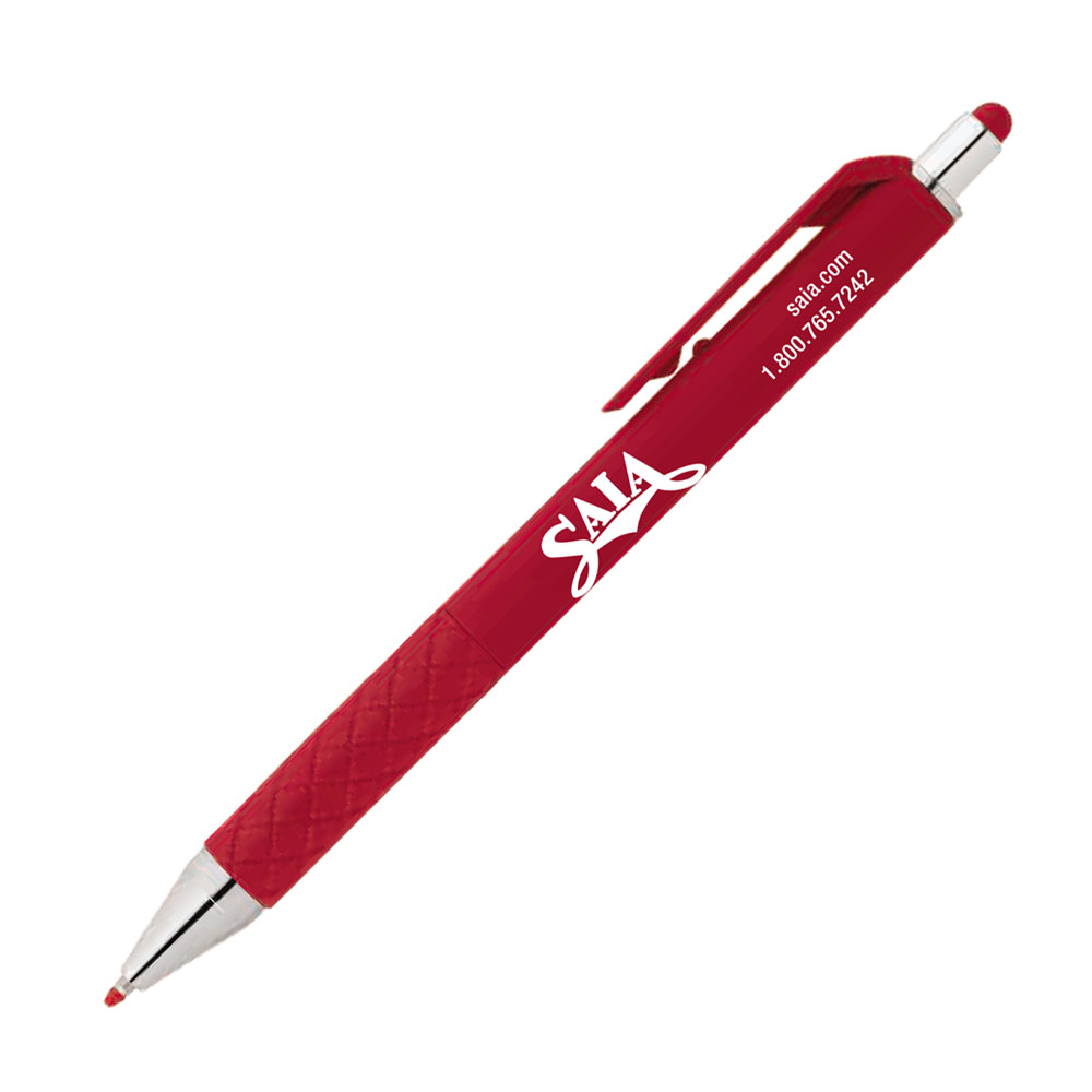 The Islander Gel Retractable Bright Stylus Pen combines style, comfort, and performance in one sleek design. Crafted from durable ABS plastic, it features a diamond-textured lower barrel and a soft-touch rubber finish for a comfortable, secure grip. The shiny chrome plunger and tip add a touch of sophistication, while the color-matching stylus offers added functionality. With its smooth 1.0mm gel refill and a 500-meter write-out, this pen delivers effortless writing from start to finish.